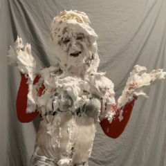Slimewife had her face smooshed into a pie by Big Bird the Clown
